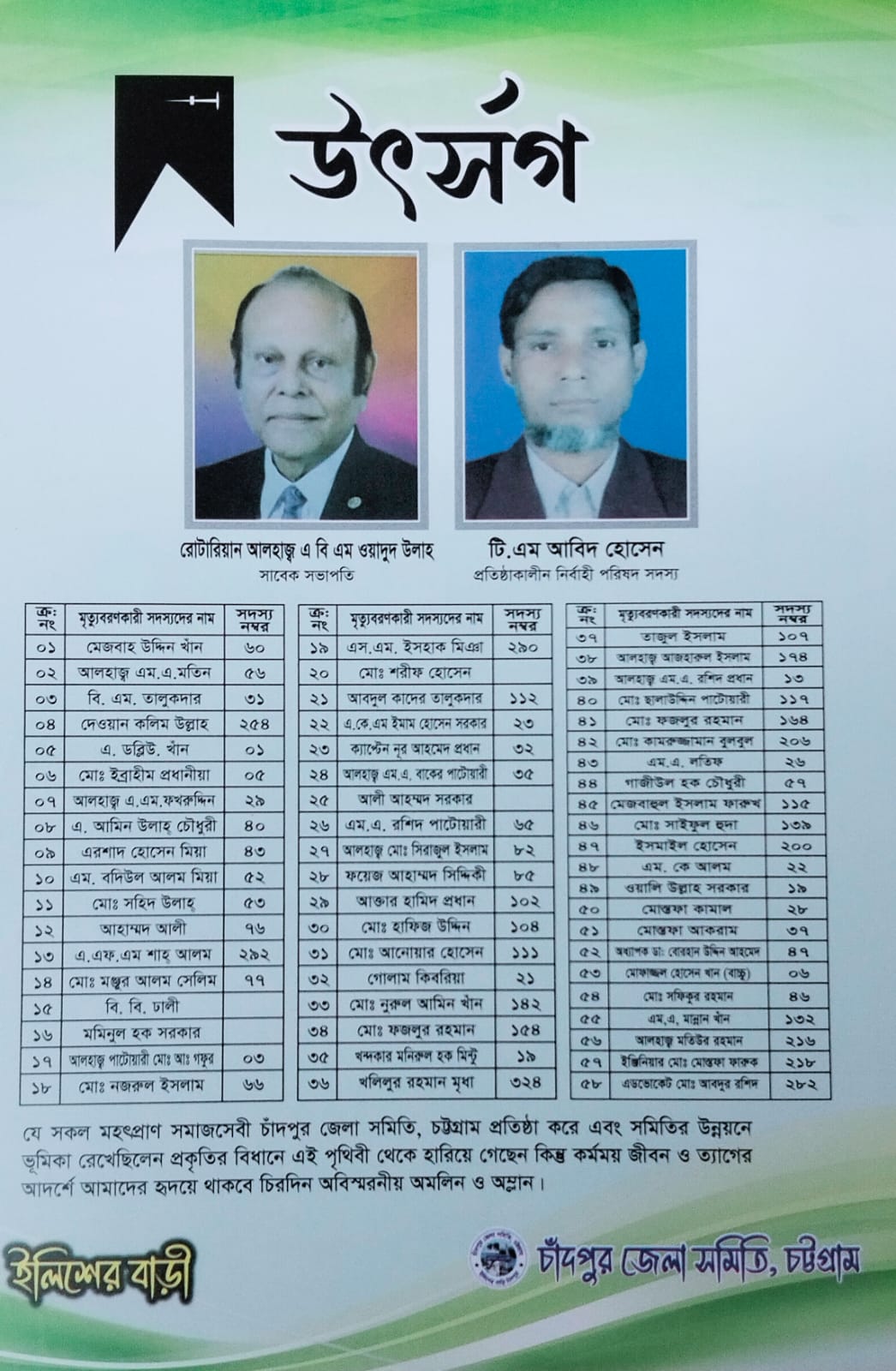 চাঁদপুর সমিতির আজীবন মেম্বারের খবর