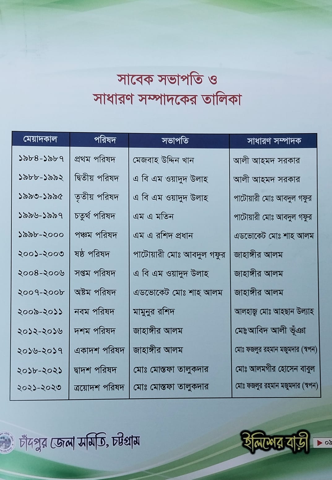 সাবেক সভাপতি ও সাধারণ সম্পাদক-এর তালিকা